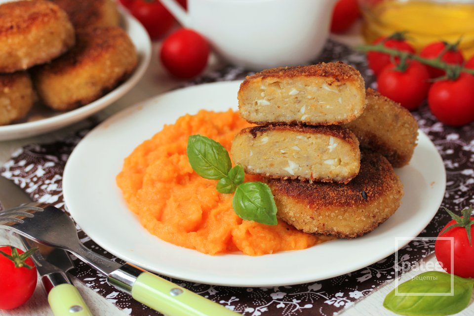 - Руками сформировать котлетки, обвалять в панировке, обжарить на растительном масле с каждой стороны. Подавать с овощным салатом, гречневой кашей или картошкой пюре.